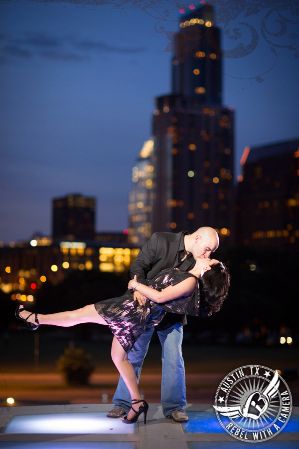 As with anything we do, romance is the key, and we work very hard to showcase the romance in our clients’ engagement pictures. We’ve photographed very shy people before who felt really awkward in front of the camera at first, but we do such a great job at loosening them up and relaxing them that by the end of the shoot they are having so much fun just being themselves. We always manage to portray the couple in a way that almost shocks them as the final images end up looking so intensely romantic. We shoot easily some of the most romantic engagement portraits in Austin and love being able to do that for couples who don’t think of themselves that way.