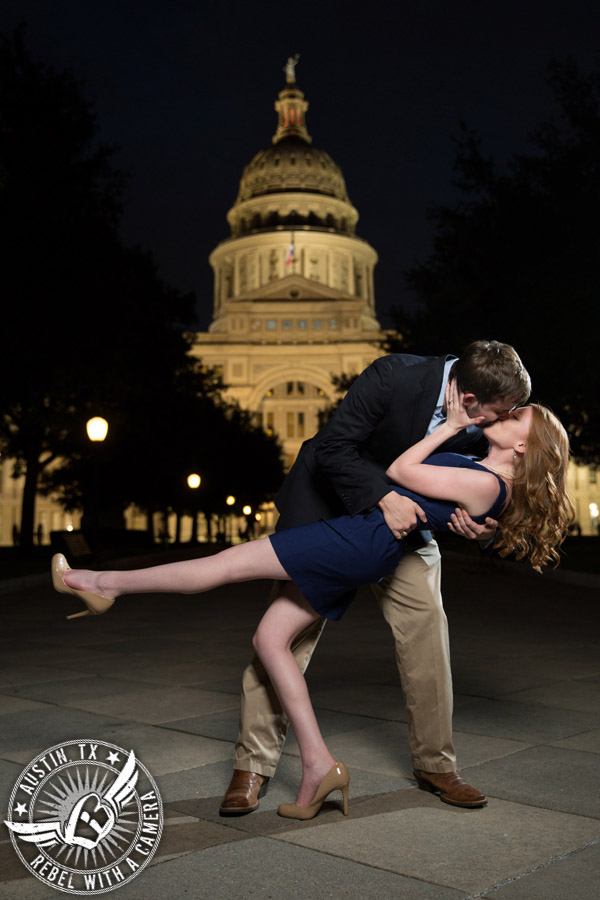 Austin is a great place to shoot your engagement portraits too. There are so many great locations from downtown Austin to the Hill Country. There are dramatic skylines, pastoral fields, rambling creeks, and breathtaking vistas. A lot of the engagements we photograph end up starting at the Texas State Capitol if we are planning on shooting in downtown Austin because the grounds are so nicely kept up and the parking is a lot more manageable than anywhere else downtown. One of our favorite things about the Capitol is that it seems you can take pictures just about anywhere there, inside or out, without breaking any rules. Plus there is no session fee charged by the location. If the couple is very proud of the Lone Star State, we can highlight the iconic features of the Texas State Capitol building like the dome, or we can shoot mostly on and around the manicured grounds and live oak trees which would make the engagement look like it took place at a beautiful outdoor location.